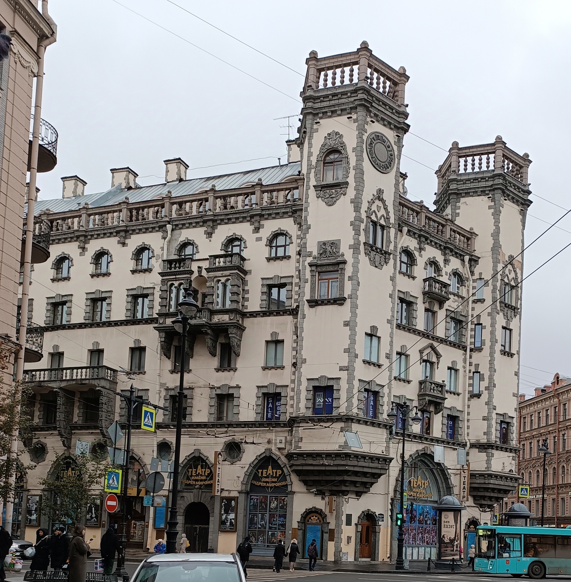 Дом с башнями я приметила, когда курьером пробегала мимо. В нём расположен театр имени Андрея Миронова. Я тогда для себя сделала пометку - как-нибудь сходить сюда на спектакль. Предложила своим любимым мужчинам - мужу и сыну - составить мне компанию. Выбрали постановку "Детектор лжи". Мы предпочитаем смотреть комедии: они поднимают настроение и, несмотря на легкость восприятия, содержат некий посыл.