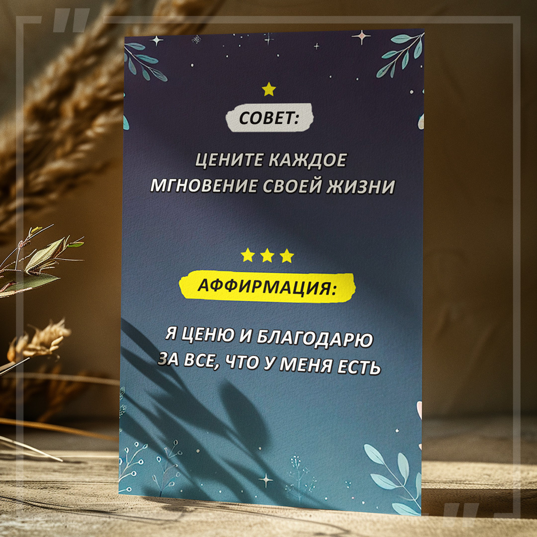✨ Совет дня: Цените каждое мгновение своей жизни. Жизнь полна маленьких чудес, которые заслуживают вашего внимания. 🌟 Аффирмация: Я ценю и благодарю за всё, что у меня есть. 🙏 Пусть благодарность станет вашим ежедневным ритуалом! 🎁Хотите приобрести колоду карт с советами и аффирмациями? Переходите по ссылке и забирайте свою порцию вдохновения вместе с подарком от автора канала! 👉Ссылка: https://jamoguvse.site/zakazkart