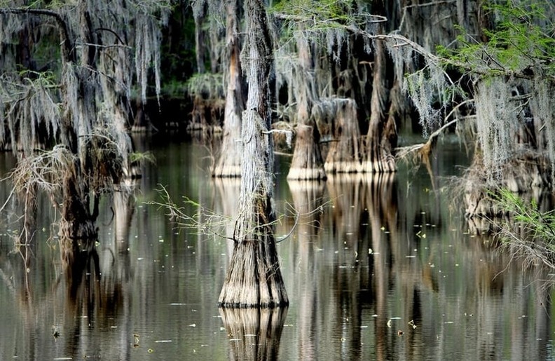 Озеро издавна использовалось бизнесом в нефтянке, за него шли постоянные споры меж корпорациями — претендовали на доли в ресурсной делёжке военные, те же нефтяники, горняки, «зелёные» охранительные службы... Собственно, знаменито Каддо реликтовым кипарисовым лесом, — к тому же красивейшим, — вполне отражённым в картине символом непрекращающейся мистики и… ужасных экзорцистских событий как из настоящего, так и из прошлого. (Слышится свист в ушах.)