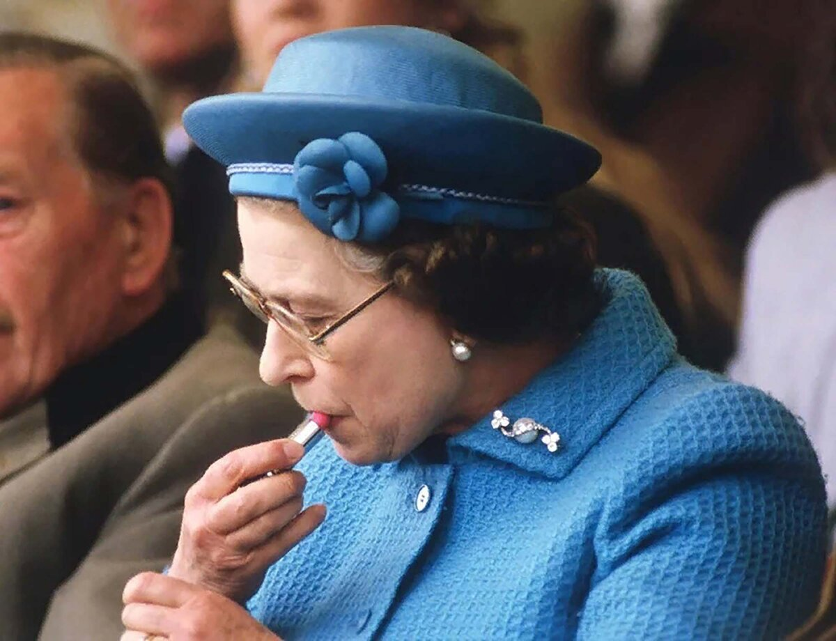 Вот сама Елизавета II, которую особо активные папарацци запечатлели за нанесением макияжа. Наряд ее смотрится безупречно, а а комплект украшений из жемчуга, поистине, аристократичен. Классические жемчужные серьги и брошь без прикрас кажутся идеальными.