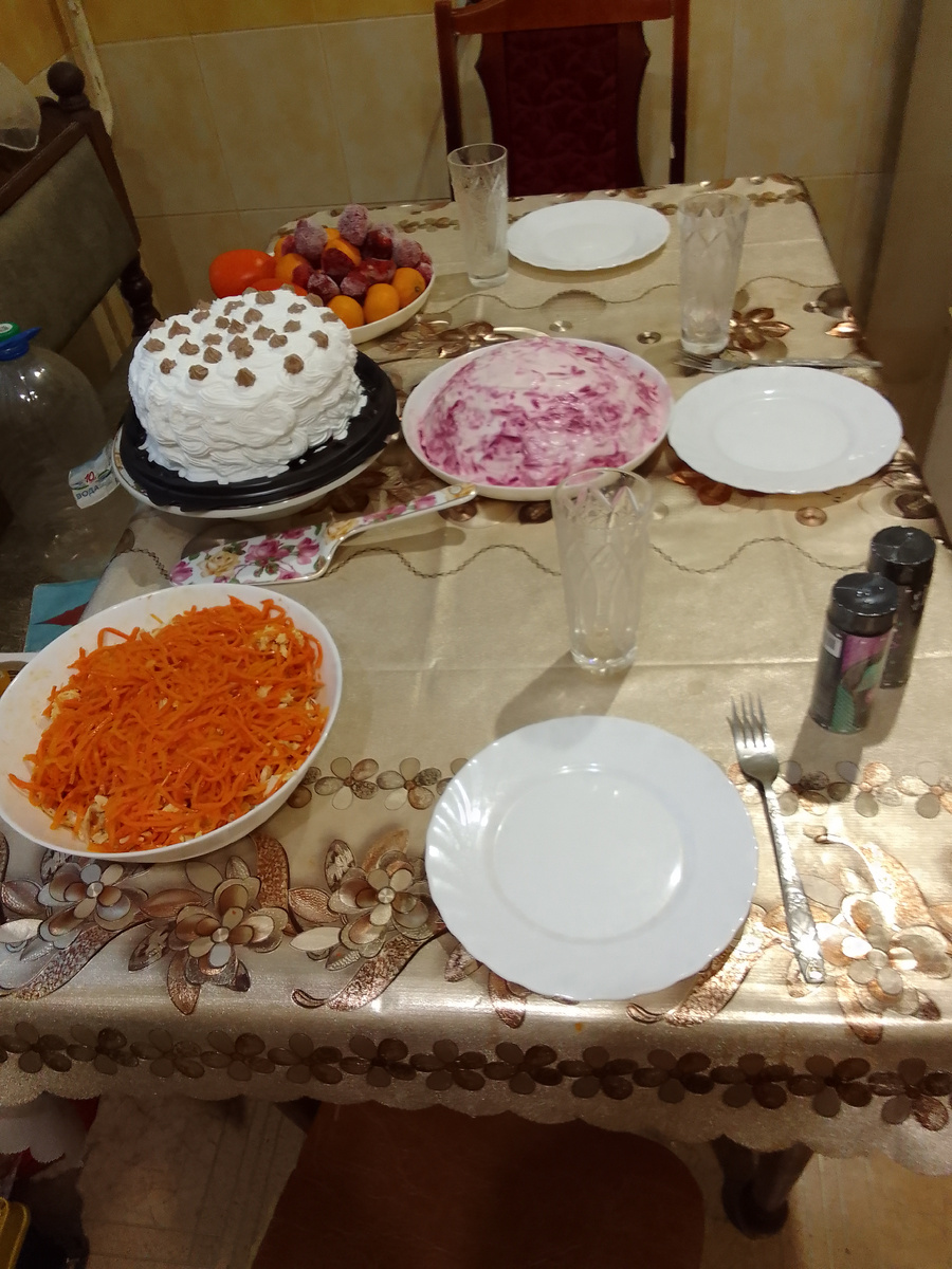 Суббота, 21 декабря. Уж точно, этот день не забудется. Осталось три часа до, пожалуй, самой трогательной и долгожданной встречи. Рока мбрприз.. С замиранием сердца, готовимя и ожидаем. Вчера носилась по магазинам. Хоть и пост, но для такого случая необходим торжественный обед, стобы и мясо, и фрукты, и непременно - торт. Готовим стол вместе. Павел мастерит уральские пельмени. Он ляпает их по древнейшей традиции сибирской. Никакое там раскатать пласт теста и вырезать кружочки. А по правилам - калбаска, пипочки, начинка и спайка пельменя. Я так не умею. И терпения не хватит. А муж может один наляпать полморозилки, поэтому пельмени у нас всегда подаются к столу к праздникам и дорогим встречам. Вкуснейшие из вкуснейших. Пока он колдовал над пельмешками, я приготовила ему перекус. Мои кулинарные шедевры наипростейшие. Мясо и как можно больше моркови и лука,