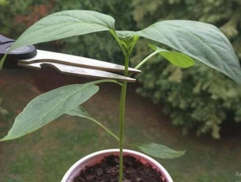- Первое прищипывание. Через две недели после посадки семян перца в горшочки, при благоприятном стечении обстоятельств, можно будет оборвать первые два листочка. На этом этапе, растения еще маленькие, и для срезки листочков подойдут простые ножницы, но важно, чтобы они были продезинфицированы. Во избежание повторного отрастания, нужно отрезая, оставлять пенек в один сантиметр.