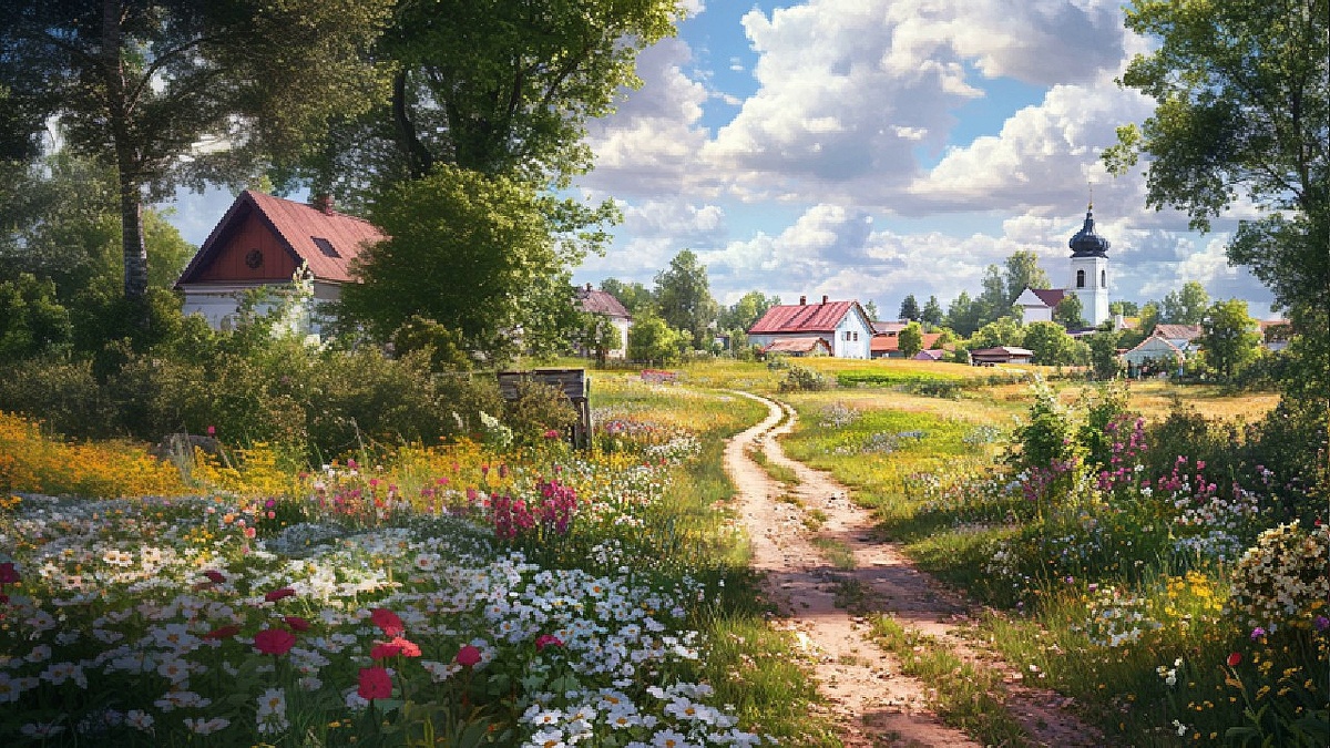 Деревня – это место, где время словно остановилось. Здесь утро начинается с первых солнечных лучей, которые мягко пробиваются сквозь занавески. Пробуждаешься от петушиного крика и звуков, таких родных и настоящих: поскрипывает старый пол под ногами, где-то мурлычет кот, а в саду стучат о землю падающие яблоки. На улице пахнет росой, нагретой травой и хлебом, который хозяйка дома печет с самого утра. В маленьком деревянном доме живет добрая бабушка Анна Павловна. Её седые волосы всегда убраны в аккуратный пучок, а руки знают всё о том, как ухаживать за огородом, печь пироги и мастерить веник из свежего пучка мяты. Летом здесь жизнь наполнена звуками природы: ветер шуршит в листве, стрекочут кузнечики, а вдалеке слышно ленивое мычание коровы. Речка, будто специально созданная для того, чтобы освежиться в жару, зовёт к себе босоногих деревенских ребятишек. Песок у берега горячий, а вода прозрачная – видно каждый камушек на дне. Рядом, в соседнем доме живет Мишка. Он весь день копается в с