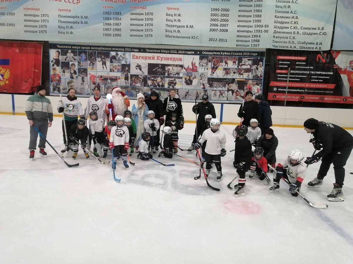 Внука вчера отвезли на тренировку. Он у нас хоккеист. Начинающий. Уже полгода как занимается в хоккейной школе "Трактора", в группе 2019 года рождения. Вообще-то родителей, да и дедушек с бабушками на тренировки не пускают, а тут пригласили и родителей. И разрешили папам выйти на лёд со своими сыновьями. Про дедушек речи не было, жена сказала, что не пустят, и я сдуру коньки не взял. Пожалел потом, но... В общем, в этот раз, наряду с папами, к детишкам на лёд вышел Дед Мороз со Снегурочкой. И всё получилось просто замечательно! Сначала дети с папами поиграли. При этом большинство из пап показали себя неплохими хоккеистами, сумевшими на равных сыграть со своими пятилетними детьми. Ха-ха. Получился хороший подарок как детям, так и их родителям. А потом дети получили ещё и подарок от Деда Мороза! Короче, хоккейная школа "Трактор" сумела сделать праздник для всех! Спасибо им! Пользуясь случаем хочу поздравить всех "Трактористов" и их болельщиков с наступающим Новым годом! И тем более п