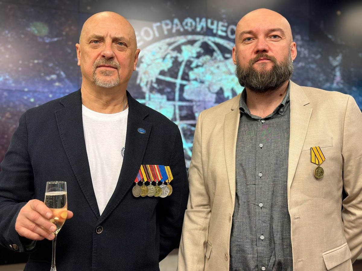 В Штаб-квартире РГО в Москве 26 и 27 декабря вручили награды Минобороны России моим друзьям и коллегам по нашей документальной команде Алексею Никулину – автору и ведущему наших проектов и Вадиму Витовцеву – режиссёру-постановщику! «Памяти героев Отечества». За многолетнюю работу по увековечиванию этой памяти. За сухими строчками этой формулировки скрыта не видимая зрителю работа. И не просто работа – напряжённая жизнь, в кадре и за кадром. А работа документалиста бывает разной. Наша в основном – это экспедиции, причём в такие места, куда просто так не попасть ни за какие деньги, или попадать не совсем хочется, но надо. От Чукотки до Балтики, от Курильских островов до Донбасса «за ленточкой» … Конечно же, главная награда документалиста – миллионы просмотров в сети. А наша команда как раз и создает ленты, которые интересны зрителю, и получают заслуженное признание. И каждый новый проект, как правило, – это вызов и профессионализму киношника, и зачастую, физическим и эмоциональным возмож