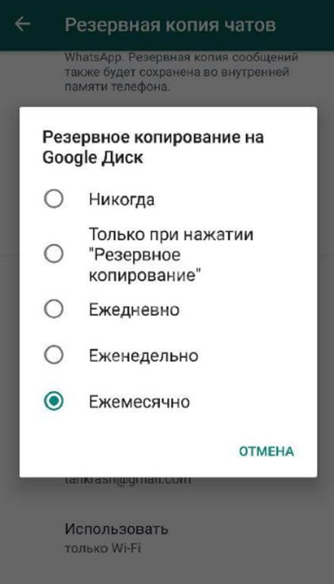 Будет удалена последняя сохраненная резервная копия WhatsApp (история чатов и файлы). Вы не сможете восстановить чаты на новом телефоне, если удалите резервную копию из аккаунта WhatsApp.