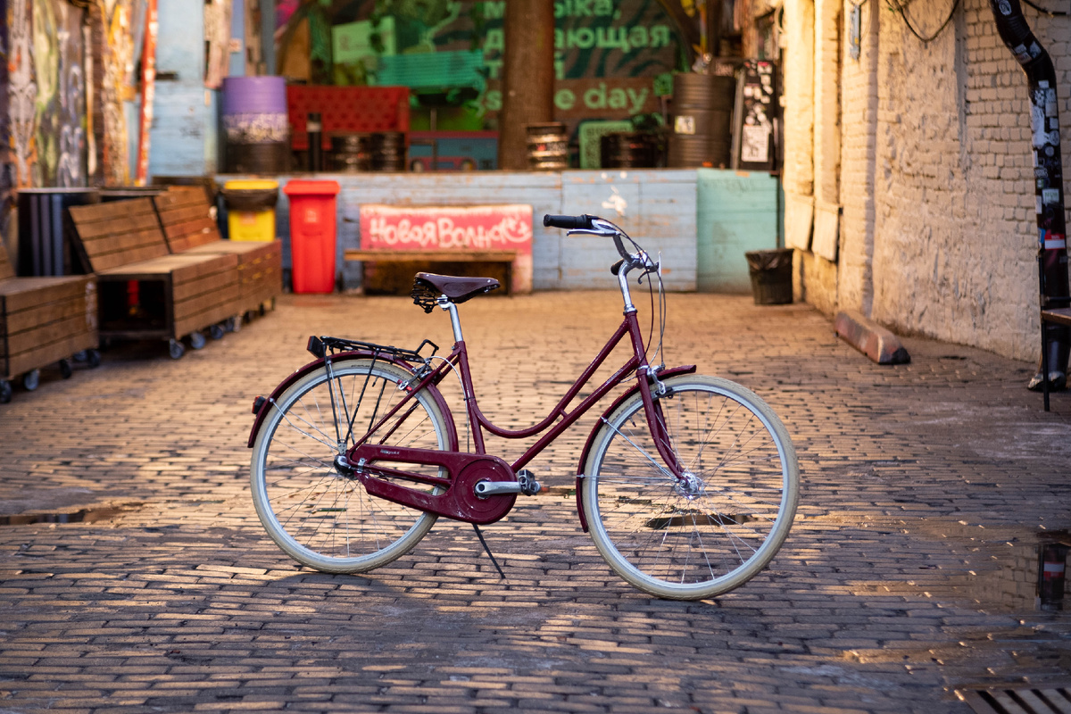 У Rossignoli есть основной модельный ряд, но мой велосипед собран специально под меня. В основе — их классический односкоростной велосипед Garibaldi 71, для которого я заказала раму нестандартного бордового цвета. Вместо базового седла из кожзаменителя мне поставили чёрный Brooks и оснастили велосипед тремя скоростями. Когда мой Rossignoli приехал в Москву, я поняла, что забыла про багажник. Ребята в мастерской Tobike подобрали мне что-то из своих запасов, а поскольку крепление для багажника у велосипеда оказалось нестандартным, то прикрутили его слегка колхозным способом.