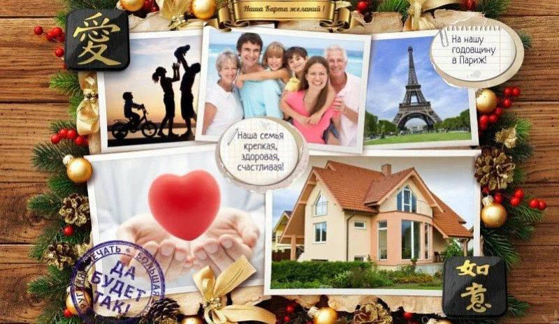 🎯 Цель: помочь себе визуализировать свои желания на новый год, а также активизировать свою творческую энергию и новогоднее настроение. 🎨 Материалы: лист бумаги, ножницы, клей и любые журналы с разными картинками. 📌 Инструкция к действиям: Шаг 1️⃣ Вырежьте из журналов картинки, которые отражают ваши желания на новый год. Например, если вы хотите поехать в путешествие, вырежьте картинку с желаемым местом или символом страны. Если вы хотите найти любовь, вырежьте картинку со счастливой парой и т.д. Шаг 2️⃣ Склейте вырезанные картинки на листе бумаги, создавая свой уникальный коллаж желаний. Вы можете располагать картинки как угодно: по кругу, по диагонали, по центру или по краям. Главное, чтобы они были видны и не перекрывали друг друга. Шаг 3️⃣ Повесьте свой коллаж желаний на видном месте, например, на стене, на холодильнике, на двери или на рабочем столе. Регулярно смотрите на него и представляйте, как ваши желания сбываются. Почувствуйте радость, благодарность, удовлетворе
