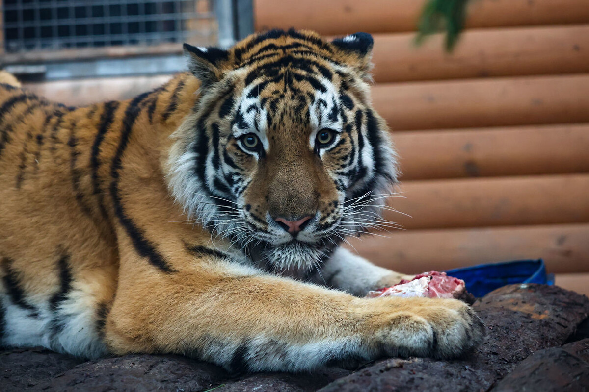 Видео: петербуржцам показали тигра Зевса из Ленинградского зоопарка