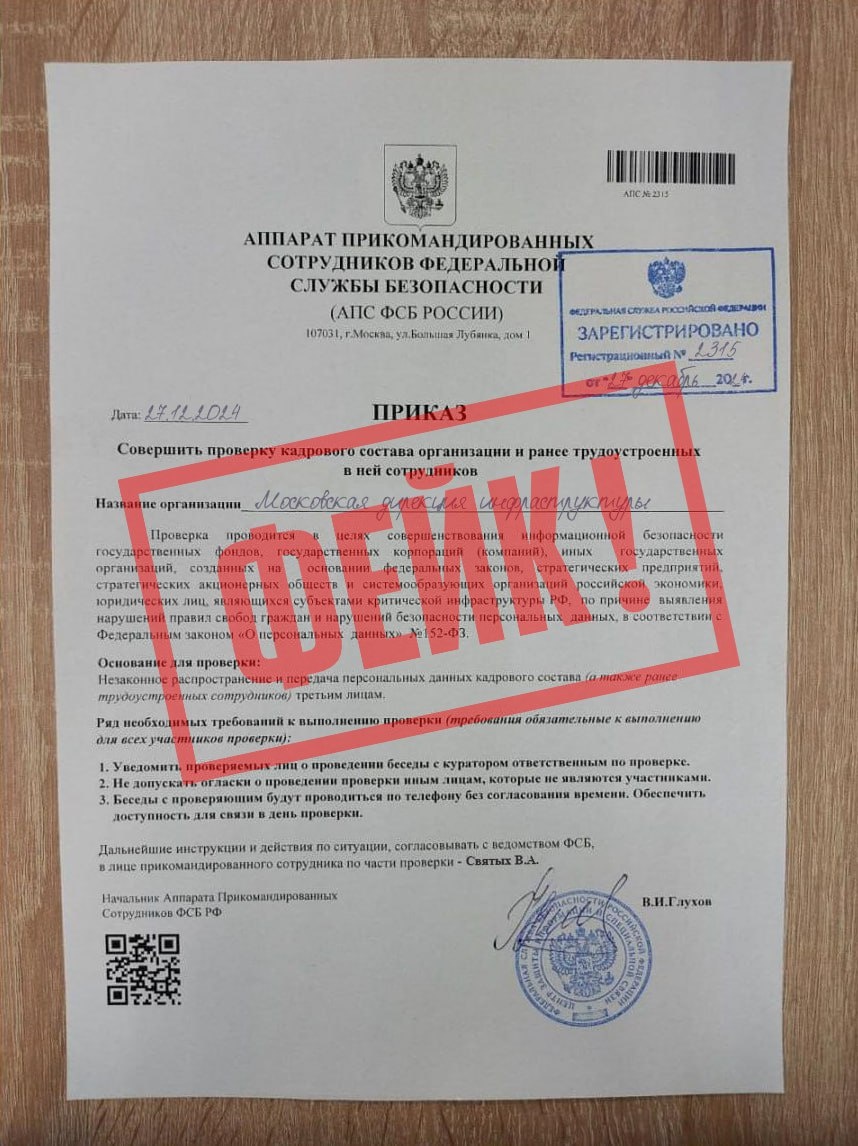 В одном из таких фейков говорится о Московской дирекции инфраструктуры. В ближайшее время также возможно появление поддельных «приказов» в отношении других организаций, - сообщили в региональном Правительстве.