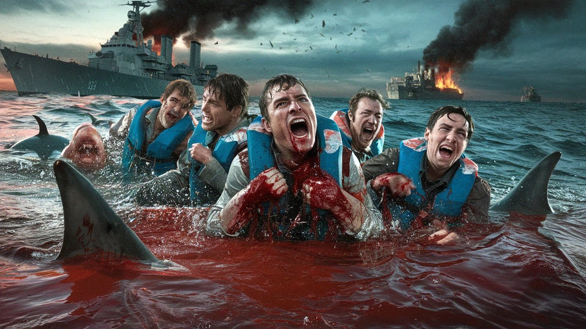 С давних времён неспокойные воды морей и океанов приводили людей в трепет перед силами природы. История знает примеры воистину эпических трагедий, в которых сотни и тысячи человек в одночасье становились беспомощными жертвами водной стихии, как, например, гибель легендарного «Титаника». Но 30 июля 1945 года произошло куда более жуткое событие — крушение американского тяжёлого крейсера «Индианаполис». Это превратилось в настоящую кровавую баню, когда выжившие моряки, окружённые ужасом и отчаянием, стали жертвами акул-людоедов. Лето 1945 года. Вторая мировая война близится к своему завершению. Нацистская Германия повержена, однако её тихоокеанский союзник — Япония — до сих пор оказывает ожесточённое сопротивление союзническим войскам. Соединённые Штаты, в надежде сломить неукротимый самурайский дух, решаются на ужасающий ход — применение ядерного оружия. Для секретной транспортировки важнейших частей атомной бомбы был выбран тяжёлый крейсер ВМС США «Индианаполис». Это судно, спроектирова