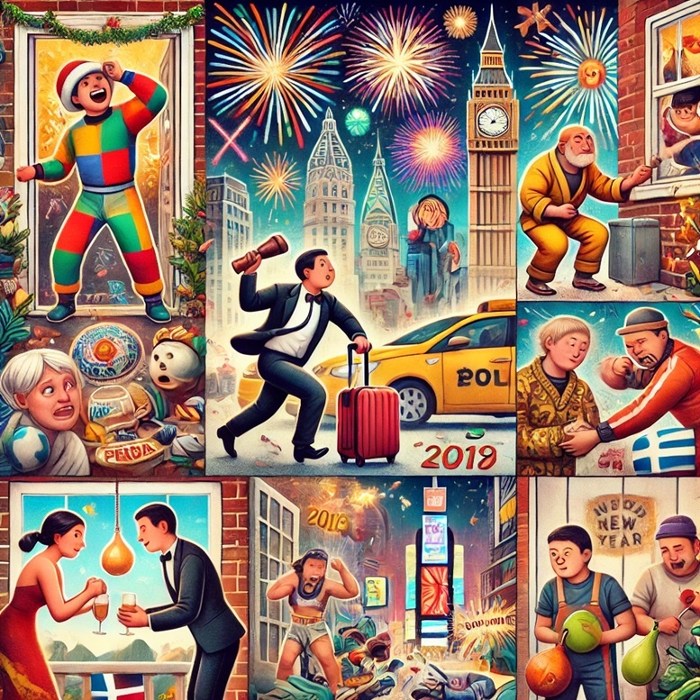 Новый год — это не только бой курантов и шампанское под елкой. В разных уголках мира этот праздник превращается в настоящий карнавал традиций: от обычаев, которые вызывают улыбку, до тех, что поражают своим креативом и масштабом. Представьте себе: кто-то бегает с чемоданом, чтобы путешествовать в следующем году, кто-то разбивает тарелки у дверей друзей, а в Перу люди устраивают боксерские поединки, чтобы очистить душу. Эти традиции — не просто забава, а способ привлечь удачу, укрепить связи с близкими или даже заглянуть в будущее. Давайте отправимся в путешествие по миру и узнаем, как необычно отмечают Новый год в Колумбии, Дании, Италии, Греции, Перу, Филиппинах и других странах. Готовы удивляться? Тогда читайте дальше! В Колумбии люди, желающие путешествовать в новом году, выходят на прогулку с пустым чемоданом вокруг квартала сразу после полуночи. Считается, что этот ритуал способствует появлению возможностей для путешествий в предстоящем году. В Дании существует традиция собирать
