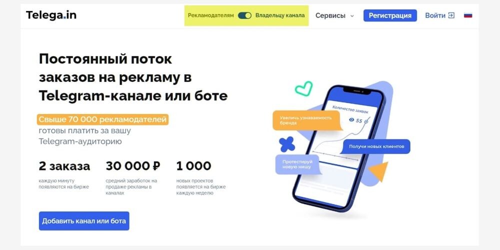 с информацией для владельцев каналов или рекламодателей. Регистрация