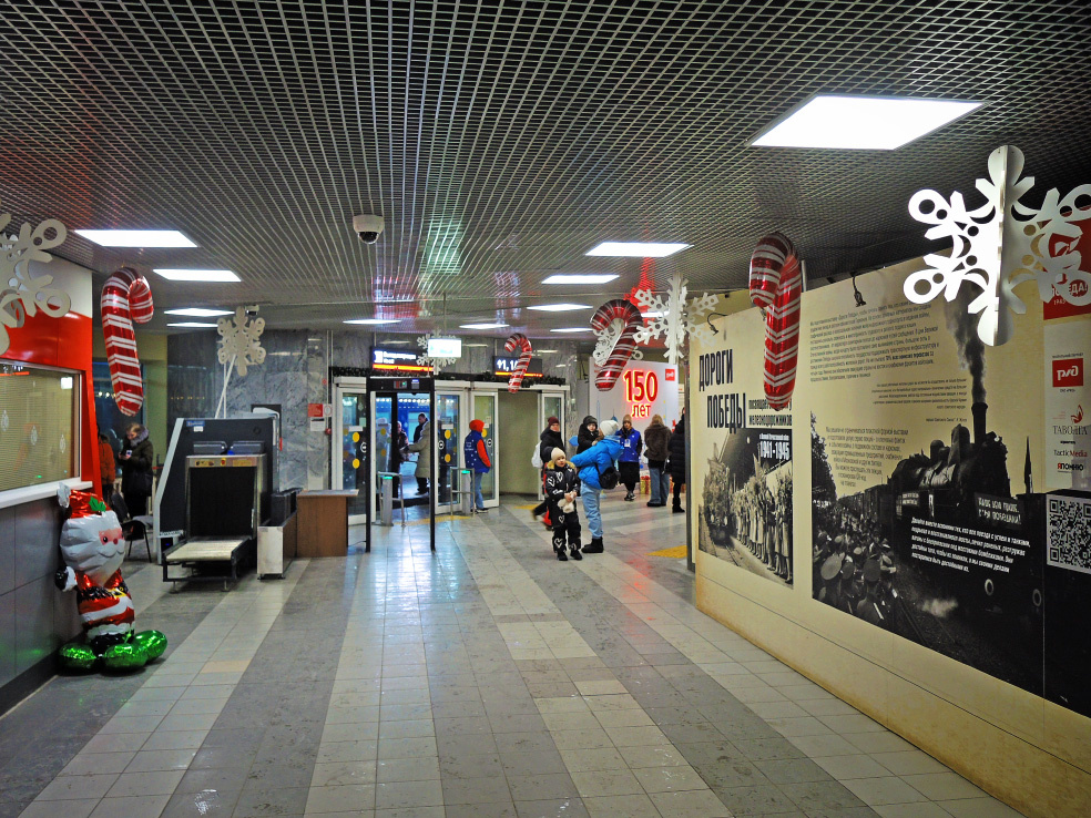 В Самаре поезд стоял на первом пути, сразу около вокзала. Зайти туда можно только через сам вокзал с досмотром на входе. Что в текущих условиях полностью оправдано. Праздничное настроение создаётся уже на подходе. Правда, подозреваю, что основная часть - это общее оформление самого вокзала. По зданию ходить не стал. Думаю, там много чего можно найти.