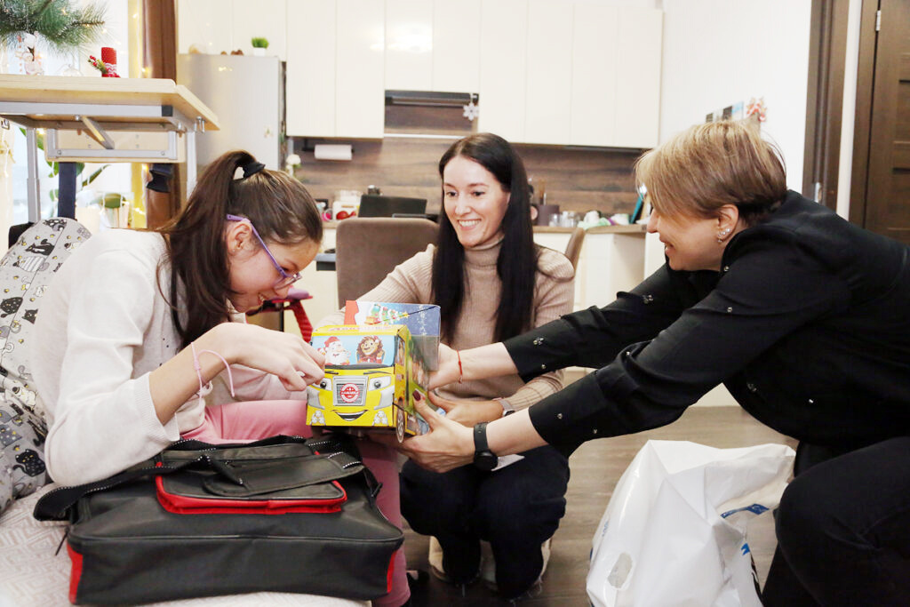 Таисия Гришечкина из города на Неве получила в подарок набор мячей для игры Бочча. Артемий Ершов в Великом Новгороде очень обрадовался профессиональному астрономическому телескопу и энциклопедии «Звездное небо. Популярная астрономия для всех». Марат Гимадеев из г. Шлиссельбург теперь обустраивает свою игровую палатку «Вигвам», а Василий Иванов из Петрозаводска ждет лета, чтобы прокатиться на своем новом велосипеде. Все ребята также получили сладкие подарки.