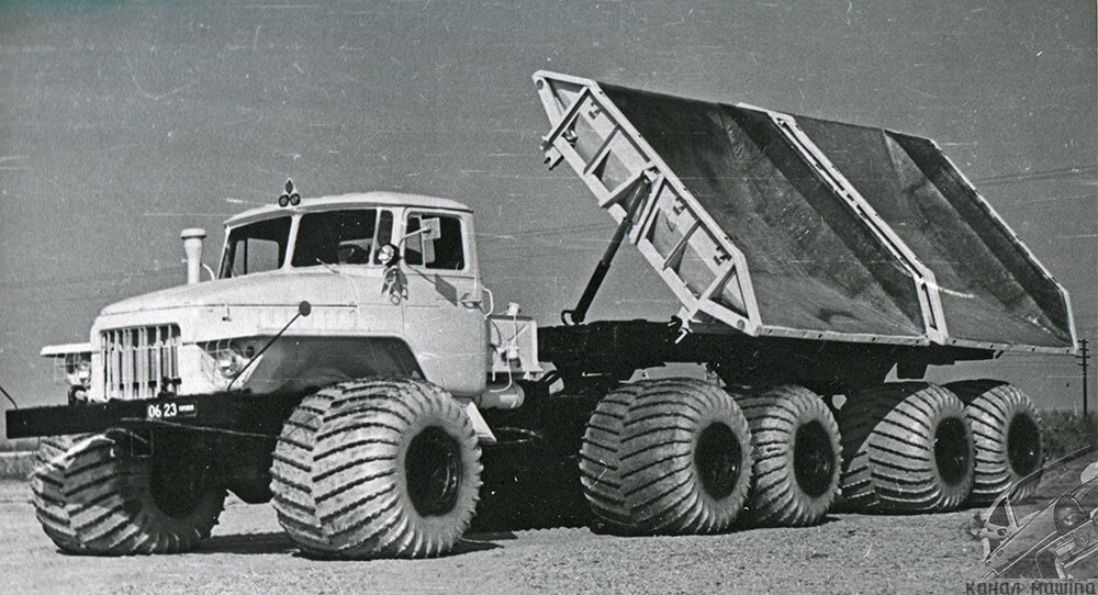 Если я спрошу вас о том, какой самый большой автомобиль вы знаете, то наверняка получу ответ - БелАЗ. Да, конечно, мощь и размеры этих самосвалов впечатляют, они и по сей день являются самими массовыми большегрузами. Но во времена СССР у них был достойный конкурент, который, увы, забыли. Это уникальный автопоезд-самосвал НАМИ-0143-СХЗ, внешний вид, размеры и технические характеристики которого ни с кем не ставили в сравнение. Погрузился немного в историю. В семидесятых годах прошлого столетия шла активная добыча соли в карьере на озере Сасык-Сиваш, который находится неподалеку от Крыма. Это карьер один из старейших в мире но сейчас не об этом. Техника, участвовавшая в разработке этого карьера, в частности тракторы и грузовик, достаточно быстро разрушала "дороги". Эти так называемые "дороги" представляли собой ни что иное, как достаточно плотный слой ила, смешанный с гипсом. Они были хрупкие, а колеса и гусеницы строительной техники - маленькие, им не хватало площади соприкосновения, ч