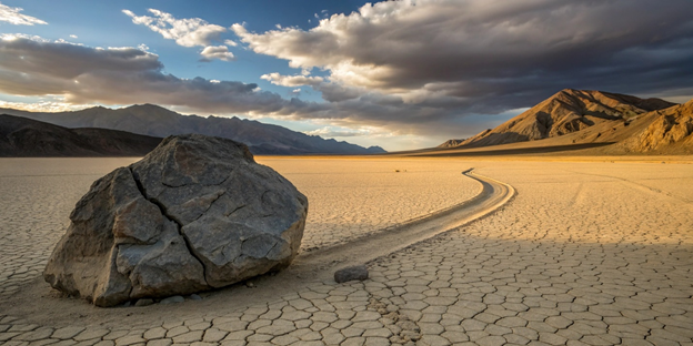 На дне высохшего озера в Долине Смерти происходит нечто, что на первый взгляд противоречит законам физики - огромные камни весом в сотни килограммов самостоятельно перемещаются по плоской поверхности, оставляя за собой длинные следы.