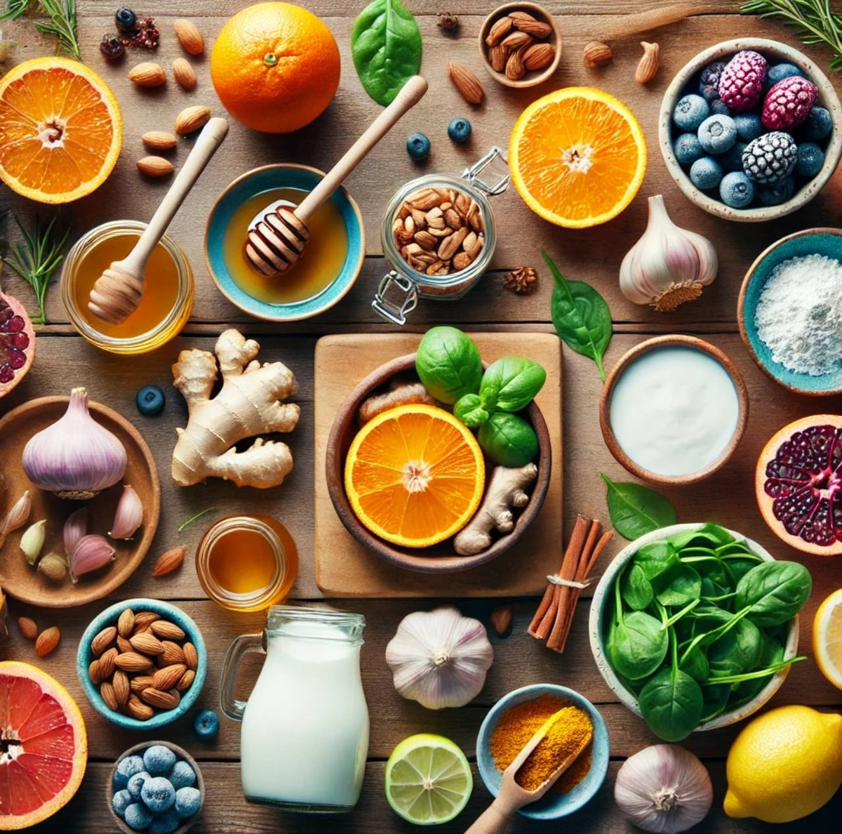 Зимой важно поддерживать иммунитет, чтобы не поддаваться простудам. Эти 10 продуктов помогут вам укрепить здоровье и чувствовать себя лучше в холодное время года. Основная часть 1. Имбирь: борется с воспалениями и согревает. 2. Мед: натуральный источник энергии и защиты от вирусов. 3. Чеснок: природный антибиотик. 4. Цитрусовые: богаты витамином C. 5. Орехи: укрепляют иммунную систему благодаря цинку и витаминам. 6. Ягоды (морозные): антиоксиданты в чистом виде. 7. Кефир и йогурт: поддерживают здоровье микрофлоры кишечника. 8. Шпинат: богат железом и витаминами. 9. Куркума: улучшает обмен веществ и борется с воспалениями. 10. Рыба: источник омега-3 и витамина D. Заключение Включите эти продукты в свой рацион, чтобы поддерживать здоровье зимой. А что из списка уже есть у вас дома?