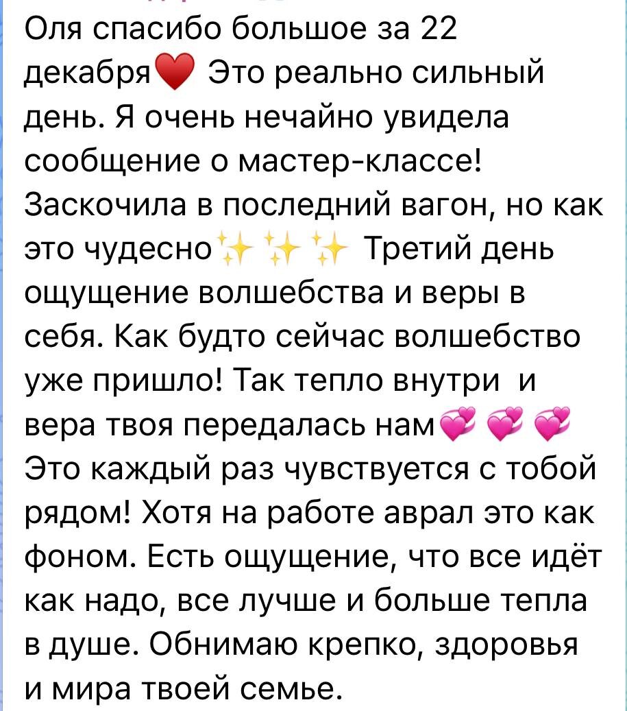 Очень устала за этот год. Даже не знаю захочу ли подводить итоги, но скорее всего - захочу )) Они удивительные! Снова пятилетка за 1 год! А пока заряжаюсь вашей обратной связью! На завтра осталось провести 1 диагностику и у меня каникулы!!!! Настоящие! 🎄 А кто не дошел до мастер-класса - зря вы сомневались и не пошли, за 3 часа девочки перевернули все итоги года и вышли победителями с ресурсами для следующего! Я реально умею делать чудеса! 😁