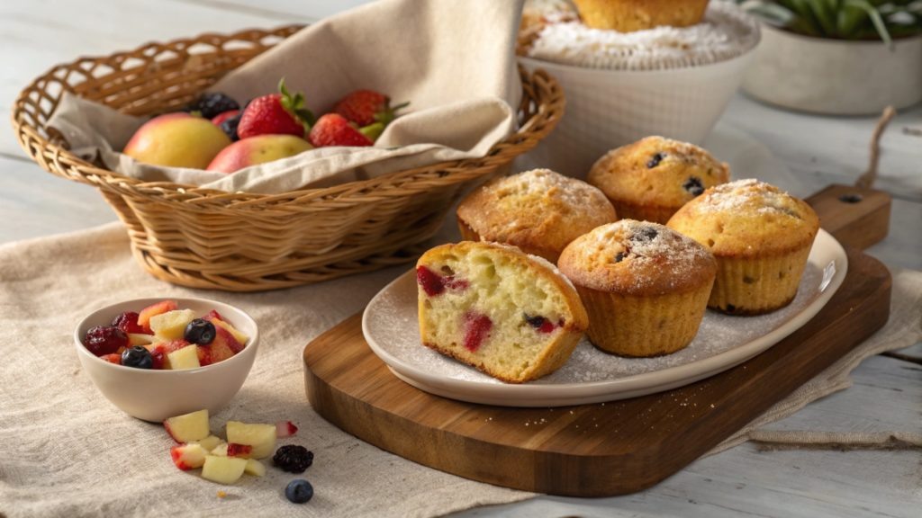 Маффины с творогом и фруктами — это не только вкусное, но и полезное лакомство. Рецепт прост в приготовлении, а результат порадует вас нежностью теста и ярким вкусом фруктов. Эти маффины идеально подойдут для завтрака или десерта к чаю! Шаг 1. В глубокой миске смешайте творог, яйцо и сахар. Хорошо перемешайте до однородной консистенции. Шаг 2. Добавьте в массу муку, разрыхлитель теста и щепотку соли. Постепенно влейте молоко, продолжая мешать тесто до достижения гладкости. Шаг 3. Нарежьте выбранные фрукты на небольшие кусочки и аккуратно вмешайте их в тесто. Шаг 4. Сформируйте тесто в формочках для маффинов, заполняя их на 2/3 объема. Шаг 5. Выпекайте в заранее разогретой до 180°C духовке около 20-25 минут до золотистого цвета. Замените сахар на мед или другой подсластитель по вкусу.Используйте любые сезонные фрукты для разнообразия вкуса.Маффины можно хранить в герметичной упаковке до 3 дней. Общее время: 45 минут (15 минут — подготовка и 30 минут — выпечка). Рецепт рассчитан на 12 ма