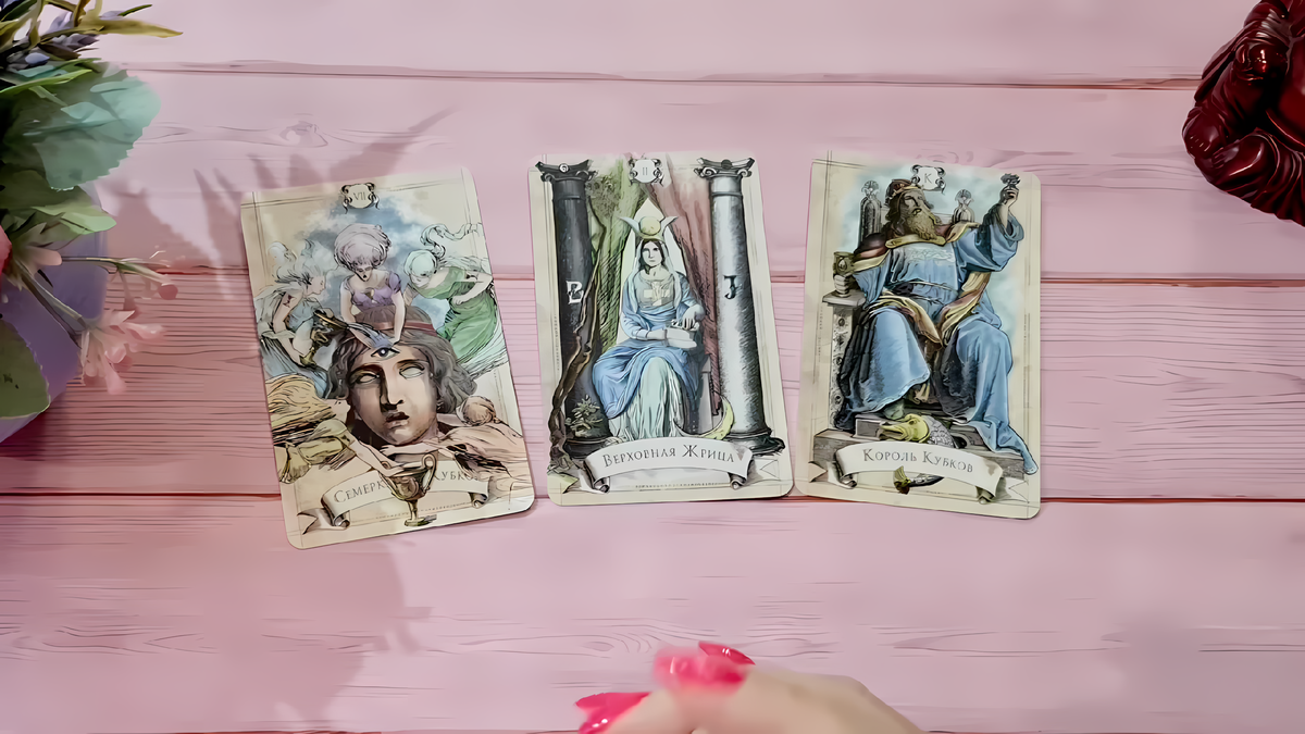 Привет, мои дорогие! Давайте посмотрим чувства, мысли и действия в моменте? Восьмерка Кубков. Верховная Жрица. У тебя с мужчиной, который является Королем Кубков, есть множество фантазий. Возможно, он не совсем понимает тебя или вы находитесь в тайных отношениях. У него тоже могут быть от тебя секреты. Твоя ситуация полна людей и скрытых смыслов. Король Кубков — человек мягкий, нежный и взбалмошный. Он любит и любим, но не постоянен. Очень падок на лесть, флирт и внимание, сам умеет рассказывать истории. Карта Белая. Сейчас он не очень хорошо виден, возможно, ты находишься на расстоянии. Этот мужчина всегда в движении, он может часто и много времени проводить в дороге или за рулем. Возможно, он работает водителем или машинистом, и его работа связана с постоянными перемещениями. Но есть что-то, что скрыто от тебя, что ещё не оформилось и что он тебе не показывает. Пятерка Посохов говорит о конфликте. Возможно, между вами существует конфликт, и ваши отношения напряжены. Это может быть ка
