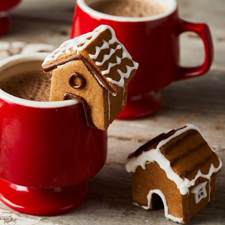 Нет ничего милее этих маленьких имбирных домиков, которые понравятся и детям, и взрослым. Используйте формочку для вырезания всех деталей (детям очень понравится помогать с этой частью), затем соберите домики и позвольте детям заняться украшением. Выстройте готовые творения в деревню из пряничных домиков, съешьте их или поставьте на кружки с какао для макания.