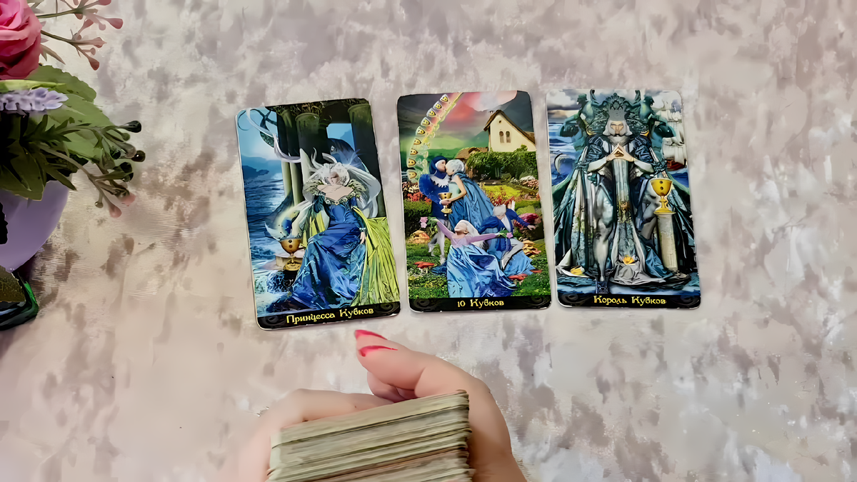 Привет! Давай узнаем, кто стоит у тебя на пороге? Кто уже стучится, кто хочет войти? Ты, Принцесса Кубков, находишься в состоянии ожидания, наполненная предчувствиями, эмоциями и счастьем. И Король Кубков, конечно же, не заставит себя ждать. Этот мужчина, яркий и страстный, полон чувств и эмоций, станет твоим спутником. Король Кубков — человек, который умеет любить и стремится сделать это. Между вами находится Десятка Кубков, что свидетельствует о глубокой эмоциональной связи. Ты пока только предвкушаешь и не знаешь, какие события тебя ожидают. Но тебя ждёт счастье и множество ярких событий.