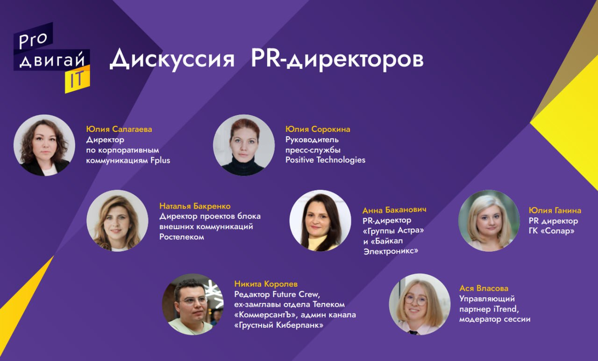 Отчет о дискуссии директоров по маркетингу и PR ведущих ИТ-компаний России на конференции «Продвигай ИТ» Конференция сообщества Продвигай ИТ, посвященная тому, как меняются бюджеты, зарплаты и KPI в маркетинге и PR в сфере информационных технологий, стала одним из ярких событий прошедшего лета. Представляем вашему вниманию отчет об этой дискуссии. Ее участниками стали: ✅ Елена Волковская, CMO КРОК ✅ Александр Гутин, CMO Группа Астра ✅ Марина Овсянникова, CMO ГК Солар ✅ Вадим Кожин, СМО VK Tech ✅ Любовь Смертина, CMO МТС Линк ✅ Дария Маркова, CMO Базальт СПО ✅ Анна Лямина, CMO eXpress ✅ Юлия Сорокина, Pуководитель пресс-службы Positive Technologies ✅ Наталья Бакренко, Директор проектов блока внешних коммуникаций Ростелеком ✅ Юлия Салагаева, Директор по корпоративным коммуникациям Fplus ✅ Анна Баканович, PR-директор «Группы Астра» и «Байкал Электроникс» ✅ Юлия Ганина, PR директор ГК «Солар» ✅ Александр Абрамкин, Основатель консалтинговой компании Heads Partners ✅ Ася Власова, Управляющ