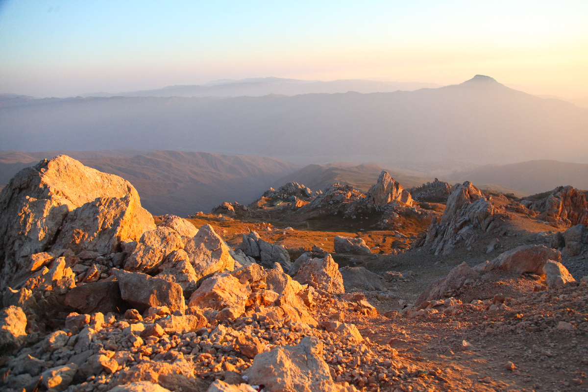 От источника до конца маршрута — еще около часа пути среди скал. Неземной красоты пейзажи напоминают марсианские. Где-то на полпути от источника до вершины люди останавливаются у скалы с выемкой размером с папаху.