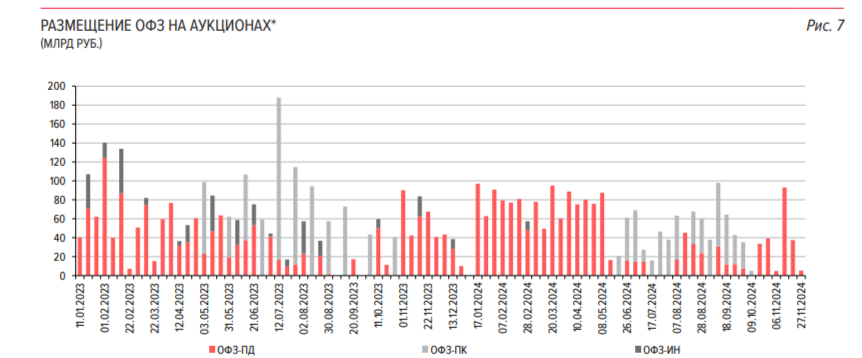 Минфин провёл аукцион ОФЗ, предложив инвесторам два выпуска. При его проведении индекс RGBI находился выше 98 пунктов, на сохранении ставки в пятницу индекс приободрился (102,5 пункта), но я не был бы настолько позитивен: 🔔 По данным Росстата, за период с 10 по 16 декабря ИПЦ вырос на 0,35% (прошлые недели — 0,48%, 0,50%), с начала декабря 0,97%, с начала года — 9,14% (годовая — 9,5%). Третью неделю подряд в корзине отсутствует подсчёт цен на авиабилеты (самолёт вносит весомый вклад в ИПЦ), то есть без учёта самолёта рост в декабре составил 0,97%, боюсь представить, какие цифры бы вышли с ним, но даже такие темпы нас выведут на инфляцию по году в +10% — придётся перечёркивать всё прогнозы. Эта неделя (50-я неделя) по темпам почти рекордная, уступив только 2014 г., когда рост составлял 0,37%, поэтому рассказывать о каком-то замедлении не стоит. 🔔 Минфин планировал занять в 2024 г. 3,92₽ трлн (план перевыполнили), сумма рекордная с начала пандемии. С учётом новых флоатеров и исполнения