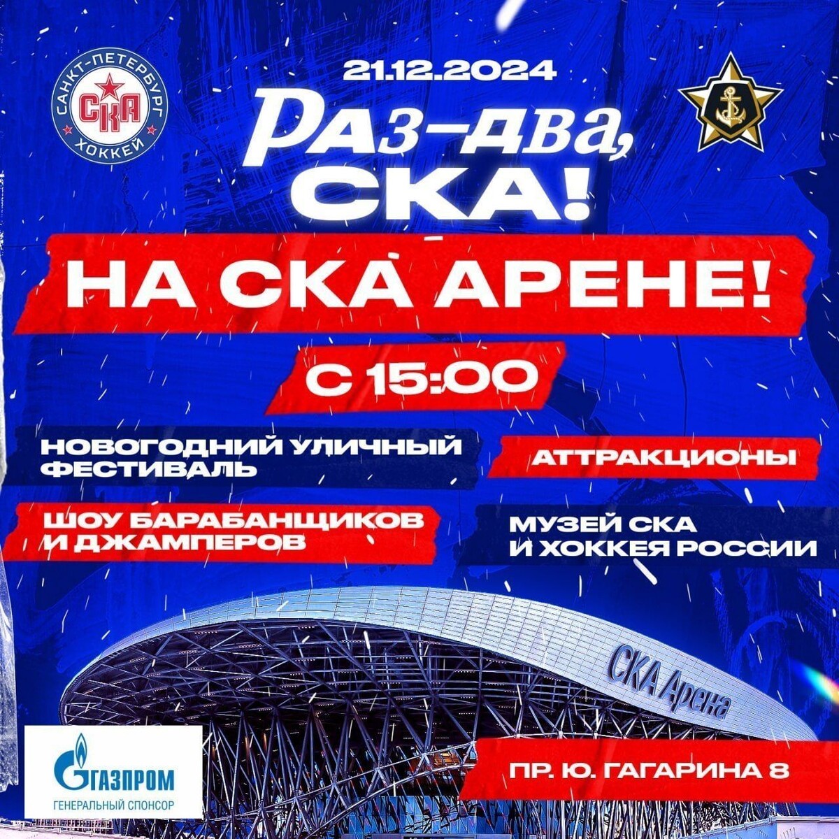 Сегодня, 21 декабря, на площадке «СКА Арены» начнется Новогодний уличный фестиваль, приуроченный к наступающему всероссийскому празднику и 78-летию хоккейного клуба. Об этом сообщает пресс-служба СКА.
