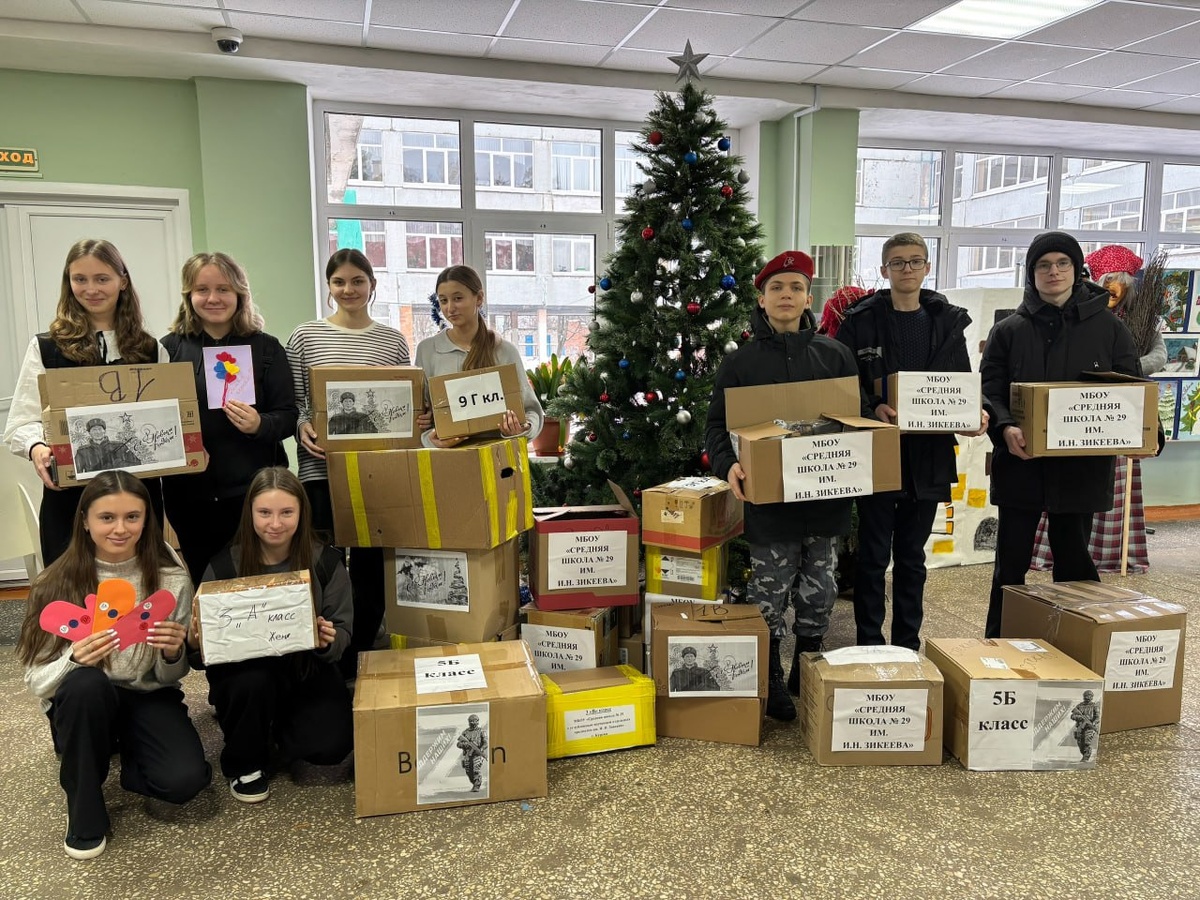 Учащиеся школы № 29 совместно с родителями и учителями собрали для наших защитников предновогодние посылки. В состав праздничных коробок вошли необходимые вещи и письма от ребят. Подарки для бойцов передадут участники группы «Патриоты из Курска». Директор школы Сергей Остриков поблагодарил неравнодушных курян за заботу о военнослужащих. Фото: Администрация Курска