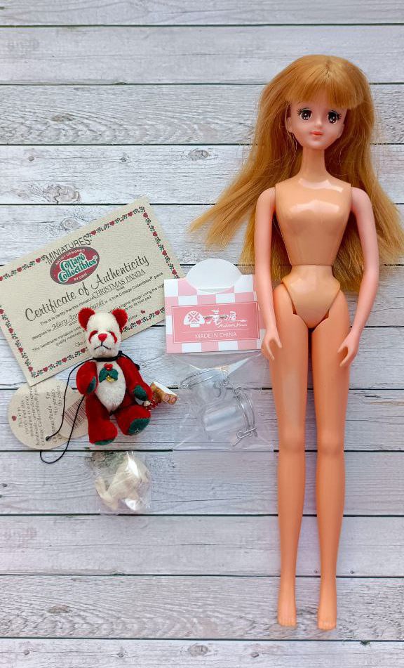 Сегодня покажу содержимое последних кукольных посылок в этом году. Получила я их ещё на прошлой неделе, но из-за болезни только сейчас появились силы, чтобы показать, что в них было. Единственная кукла - Ma-Ba Барби из 80-х. Я смотрела на неё ещё в начале этого года, и тогда мне удалось побороть в себе хомяка. Подумала, что одной Барби от Бандай мне будет достаточно. Затем девочка исчезла из продажи. Честно говоря, после этого я начала немного сожалеть о том, что её упустила. Однако к моему удивлению по осени она вновь мелькнула в продажах продавца. Тут я уж решила, что просто обязана её купить. Барби очень милая, хотя как и все Барби от Бандай тех лет, слаба в талии, а торс несколько потемнел от солнца и времени. Ещё одно приобретение - миниатюрная рождественская панда! Вообще я обычно не покупаю такого рода штуки. Тем более стоила она дороже некоторых кукол, купленных мной в этом году... Например, Ma-Ba Барби. Однако медвед меня совершенно очаровал, поэтому я возвращалась к объявле