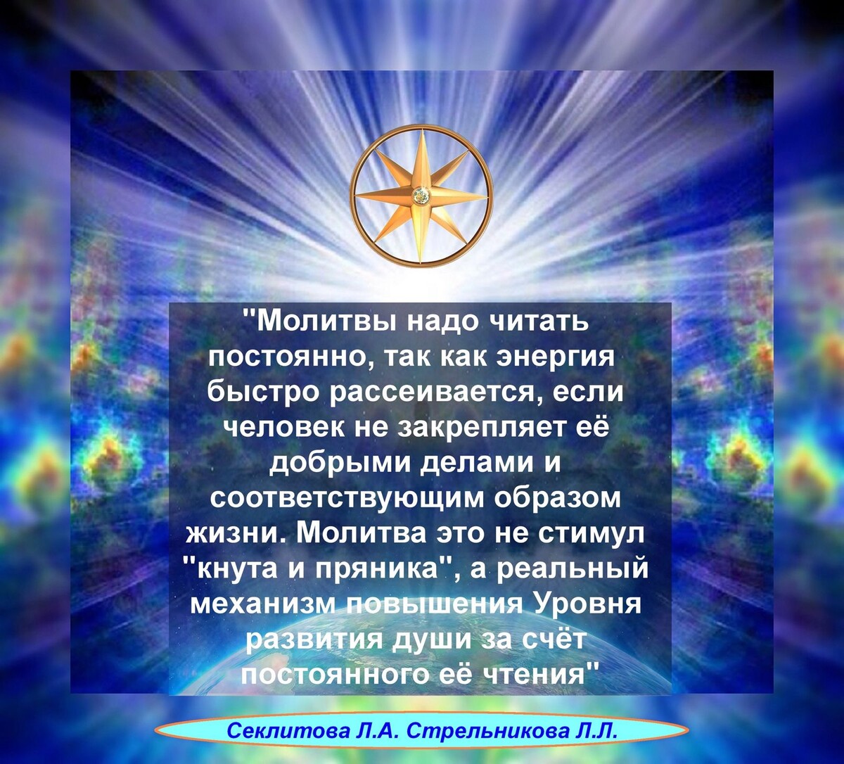 При чтении 3 наших молитв пространство того помещения, в котором Вы читаете их, очищается вместе с Вами. Если Вы обладаете обычным потенциалом (человека среднего Уровня), то Ваши родные не будут очищаться от чтения Вами наших молитв. Каждый человек должен читать их сам для собственного очищения. Но если у Вас потенциал души намного превосходит средний Уровень, то Все родные, попадающие в Ваше поле при чтении наших молитв будут хорошо очищаться.