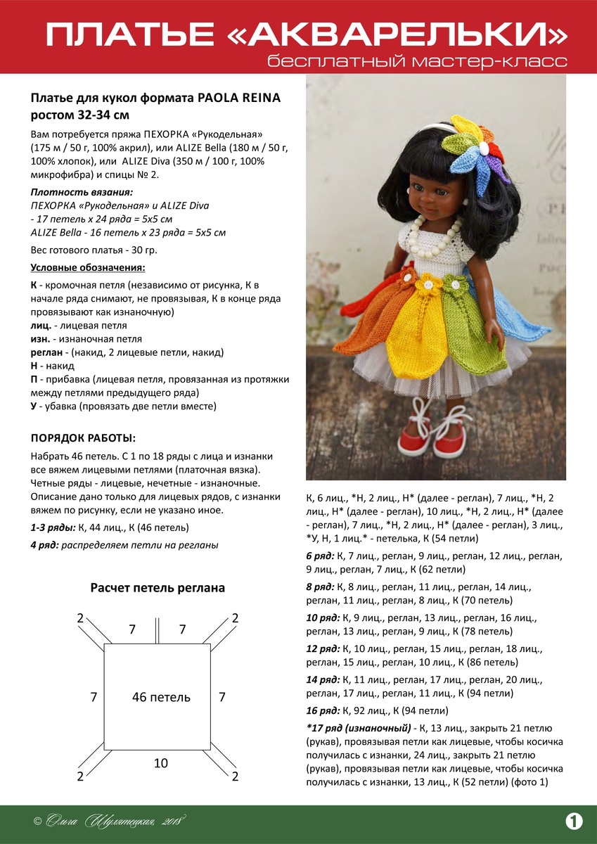 МАСТЕР-КЛАСС: Платье для Паола Рейна "Акварельки". Автор: Ольга Шулятецкая