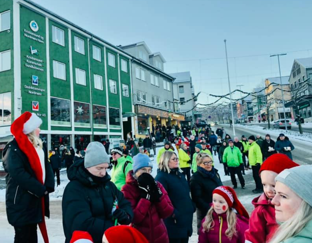 Декабрь - месяц на побережье Норвегии непредсказуемый. Если на континенте все понятно - снег и минусовая температура, то здесь может быть довольно тепло. Поэтому есть такое понятие -Белое Рождество - значит со снегом. За 10 лет жизни здесь, я белое Рождество видела всего три раза. Вот и в этом году в Рождественскую ночь будет +6 и дождь. Эту статью я пишу вместе с моими коллегами- блогерами из других стран: Чехии, Бразилии, Греции и Англии. Ссылки на статьи будут внизу. Интересно сравнить - как там у них наряжаются... Итак, в прошлом году в Норвегии было Белое рождество, многие фотографии я сделала именно тогда. Там хорошо можно рассмотреть как одеваются жители моего городка в декабрьские дни: Эти фото были сделаны в начале декабря, когда был парад Юлениссе / это новежские деды Морозы// и открытие городской елки. Как видите, много родителей с детьми: На такие праздники и на рождественские ярмарки, родители и дети часто приходят в красных колпачках и с румяными подкрашенными щечками. Им