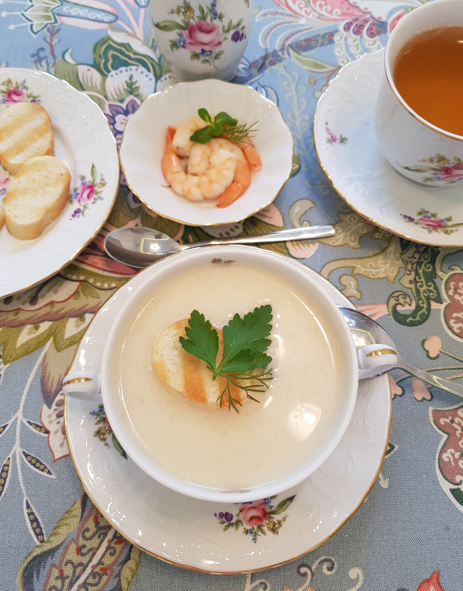 Добрый день, дорогие друзья! Сегодня я предлагаю вашему вниманию нежный, согревающий и ароматный суп-пюре. Для приготовления нам понадобятся: 1 кочан цветной капусты, 1 головка репчатого лука, картофель 1 штука, корень сельдерея 1/4, 200 грамм сливочного плавленого сыра, 3 зубчика чеснока, 1 чайная ложка соли, 2 столовые ложки масла из виноградных косточек, 1/4 чайной ложки чёрного молотого перца, 1/4 чайной ложки молотого мускатного ореха. Приготовление: лук нарезать четвертинками колец, чеснок пластинками, сельдерей соломкой. Капусту разобрать на соцветия и залить кипятком. На растительном масле пассеровать лук. Добавить сельдерей и чеснок. Посыпать чёрным перцем и мускатным орехом, перемешать, накрыть крышкой, уменьшить огонь до среднего уровня и тушить 10 минут. Картофель нарезать кубиком. В кастрюлю с водой переложить цветную капусту. Довести до кипения, добавить половину чайной ложки соли. Положить картофель, накрыть крышкой, довести до кипения, убавить огонь до среднего уровня
