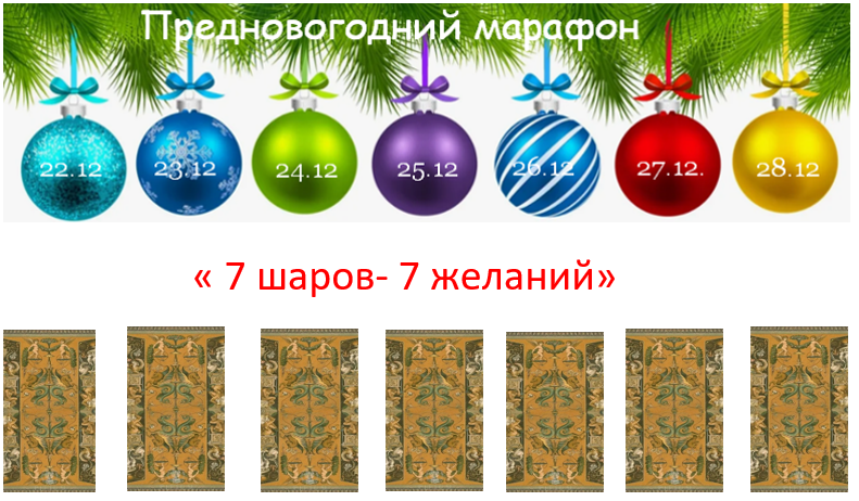 🔔Приветствую, вас, прекрасные подписчики моего авторского канала.💃 Это немного неожиданно, но кажется год почти закончился.🔚 Каждый день декабря - на вес золота. Но, предновогоднее время — это не только бытовые хлопоты по подготовке к волшебной новогодней ночи🎄, это- время для того, чтобы загадывать желания и строить планы на будущий год⏱. У меня список важных дел на 2025 год уже готов📃. И, очень хочется узнать вероятность и перспективу их исполнения. Я приглашаю тебя, участвовать в марафоне "7 шаров- 7 желаний»🪩 Сегодня - день зимнего Солнцестояния. Один из четырех самых важных дней в Колесе Года. Напишите завтра семь своих желаний на 2025 год, которые вас реально вдохновляют и мотивируют. Зафиксируйте желания на семи одинаковых по размеру и цвету бумажных записках. Сложите записки в одно место: шкатулку, варежку, банку, шапку или любую другую ёмкость. Начиная, с 23 декабря вы будете открывать одну записку, а я открывать одну карту и предсказывать шансы на исполнение этого ваше