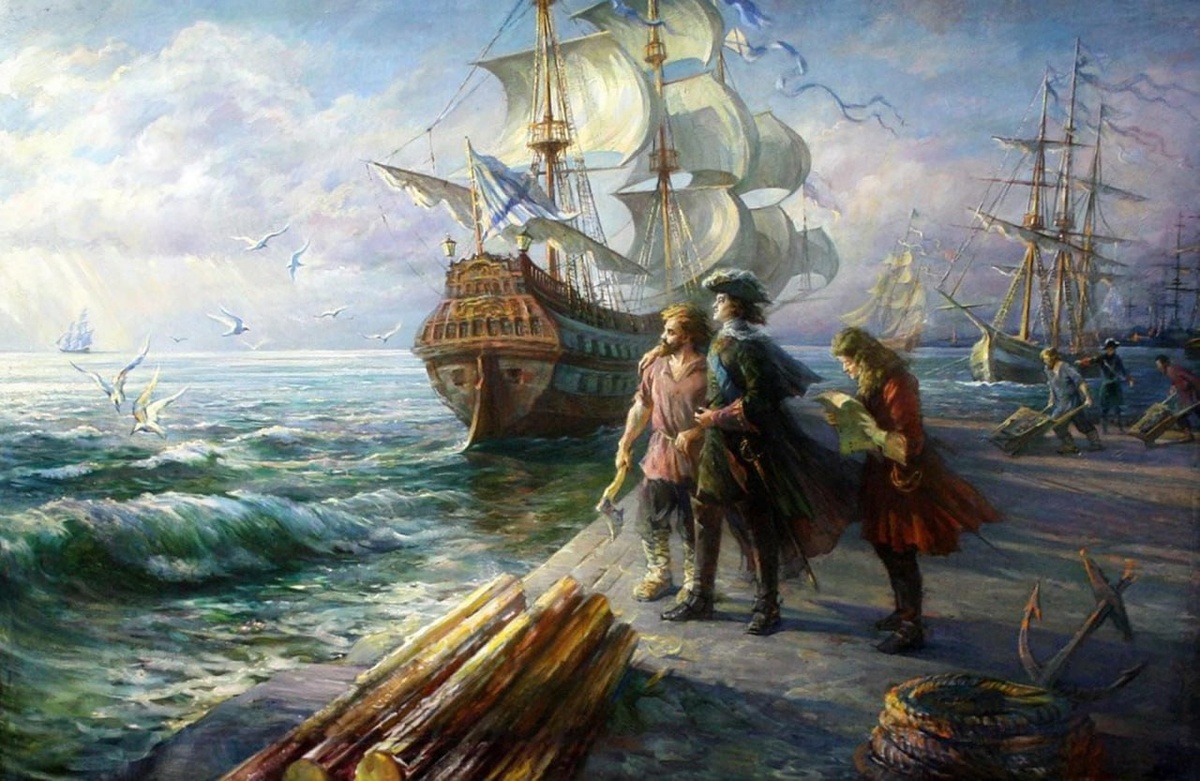 21 декабря 1698 года учреждён Приказ воинский морского флота - первый орган управления отечественным флотом. После успешного похода на Азов в 1696 году Россия получила выход к Азовскому морю. В октябре 1696 года по настоянию Петра I Боярская Дума приняла "Статьи удобные, которые принадлежат к взятии крепости или фортеции от турок Азова" - документ о строительстве регулярного флота в России. Были определены сроки постройки флота: "Корабли сделать со всею готовностию и с пушками, и с мелким ружьем, как им быть в войне, к 1697 году, к апрелю…" Предполагалось, что корабли будут строить и оснащать "кумпанства" - товарищества землевладельцев. Дела по казённому кораблестроению и списки кумпанств были переданы в Судный приказ стольнику окольничему Александру Протасьеву. Он, как главный распорядитель по постройке флота, получил звание Адмиралтейца. А часть Судного приказа, ведавшая судостроением, стала Адмиралтейским приказом. Адмиралтейский приказ осуществлял контроль за строительством фло