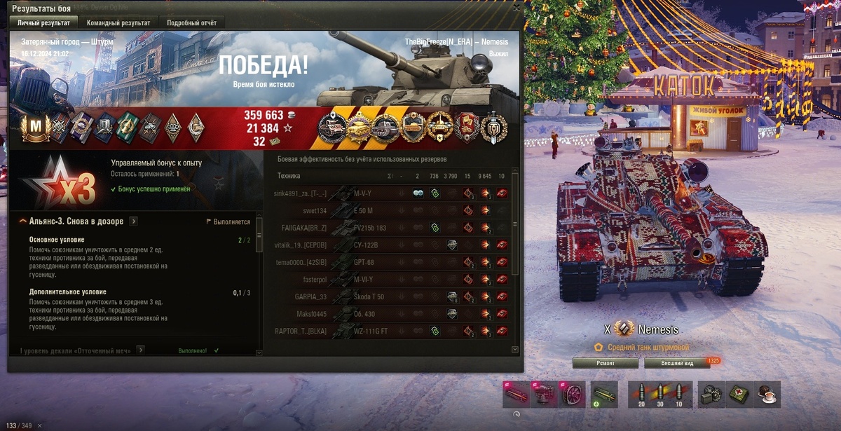Здарова, бойцы! Пока отхожу от вчерашнего веселья, хочу дать инфу по очередному коробочному танку! Nemesis - жаль что не прем, а в остальном отличный аппарат! Тезисно, урон в минуту как у леопард 1, стабилизация отличная, точность хорошая, сводится быстро, основной снаряд хэш фугас 510 урон, 230мм пробитие! Кумулятивы 330мм пробой, крутится на месте и в движении как юла, башней танкует периодически, обзор 480м без оптики, увн -8, играй не хочу от рельефа! Разгоняется быстро, но максималка 45км\ч, рекомендую экспериментальную турбину Т2 или Т3 вместо стабилизатора вертикальной наводки! Аппарат приятно меня удивил и уже на 4й бой я выдал то, что вы видите на скрине! Крайне рекомендую этот аппарат любителям ст! В ровных руках он способен выдавать хороший и стабильный результат!
