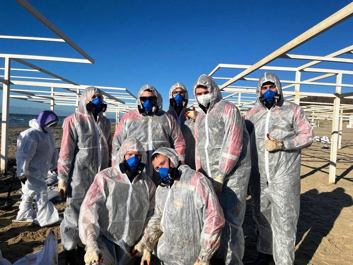 Студенты-спасатели из Донецка отправились в Анапу очищать пляж от мазута после крушения танкеров