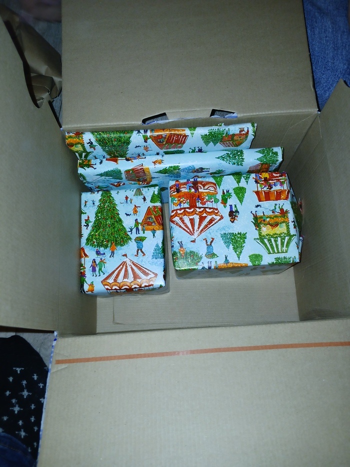 Как я и боялась, посылка пришла мне в тот день, когда у меня был корпоратив. А следующий день - рабочий, так что забрать получилось только вечером. Дел в этот день было много, так что открыть планировала на следующий, чтобы спокойно и красиво нафоткать, но нетерпёж взял своё. Так что фотки получились не очень выразительные, но уж извините. Итак, открыла я коробку, а там - свёртки. Мне такое оформление в первый раз попалось. Приятненько. Начинаем разворачивать. Божечки-кошечки!!! Это всё мне??? Если не видно по фото, вот это красное клетчатое на шаре - из ткани! Так круто! Ещё там были сушёное манго и апельсин (даже не знала, что бывает такое) и мои любимые тканевые масочки. В общем, я в полнейшем восторге!!! Абсолютно каждый подарок - моё любимое. Даже мама, когда я ей фотку скинула, первый раз за три года моего участия в АДМ спросила:Ты что, написала там, что ты любишь?". Дорогая Снегурочка! Спасибо тебе огромное!!! Подарок потрясающий! Отдельное спасибо, что он для меня и только для