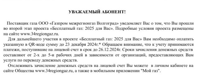 Жители Волгограда получили необычные письма от газовой компании. Горожане предположили, что это фейковые письма, которые могут рассылать вовсе не газовики, а мошенники. "Блокнот" разобрался в ситуации. Волгоградцам пришли уведомления о том, что они могут получить бесплатный газ на 2025 рублей. В письме указано, чтобы получить выигрыш, необходимо до 23 декабря оплатить сумму по QR-коду. Некоторые местные жители отнеслись к такой акции со скептицизмом: – Кто может подсказать, что за "акция" такая? – Бесплатный сыр бывает только в мышеловке, – писали в соцсетях горожане. Корреспондент решил выяснить подлинность рассылаемых писем в газовой компании: – «Газпром межрегионгаз Волгоград» проводит акцию для поощрения добросовестных абонентов компании. Победители акции получат на лицевой счет 2025 рублей для оплаты потребленного газа. Участниками акции могут стать абоненты, которые передали поставщику газа информацию об актуальном адресе своей электронной почты и номере мобильного телефона. Эта