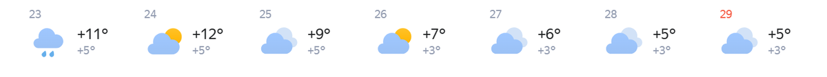 По данным сервиса «Яндекс Погода», рабочая неделя для горожан начнется с дождя и плюс 11 градусов. Ощущаться это будет как +5 градусов.