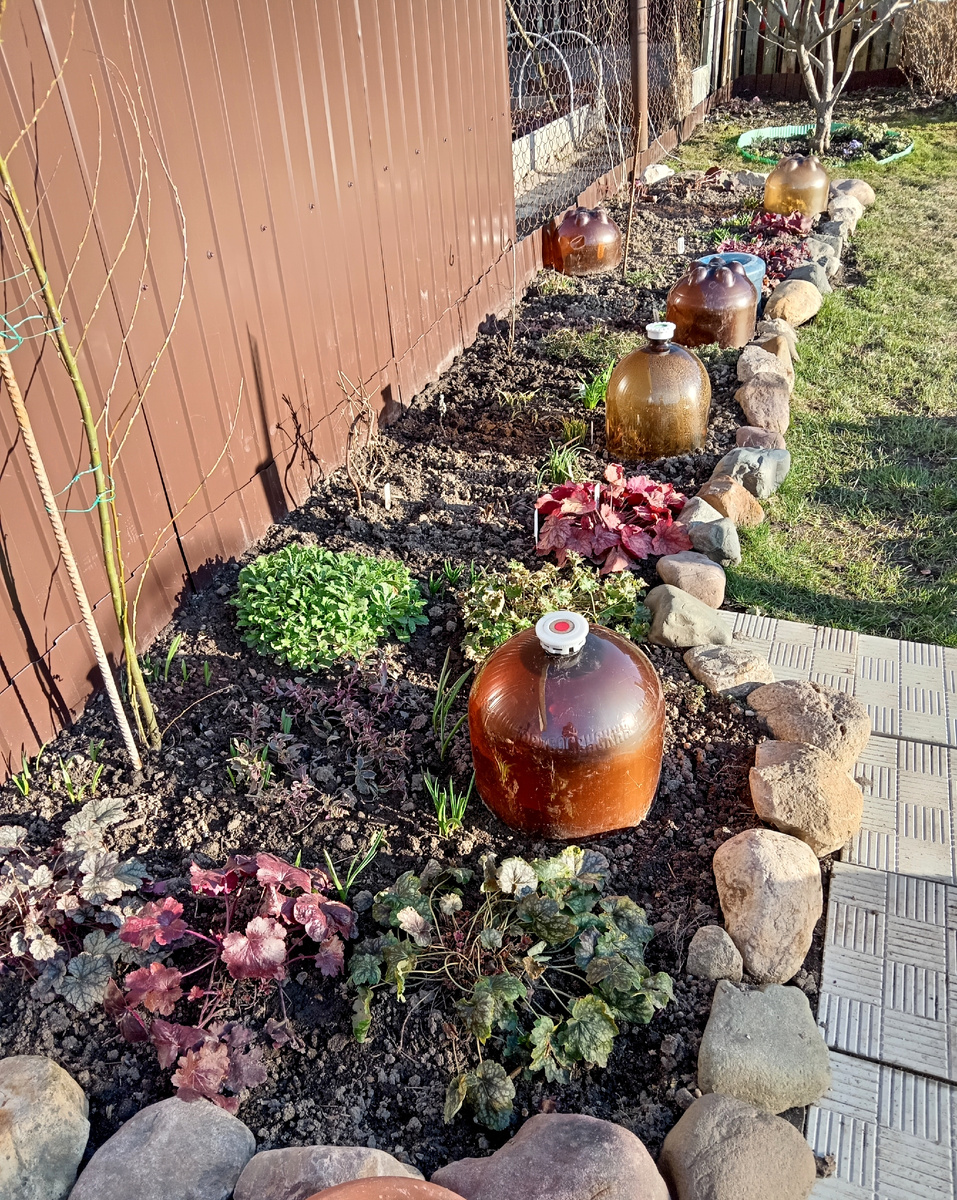Первый - на кой эта неестественная безвкусица, второй - где я взяла столько камней, а третий - как я добиваюсь, что между булыжниками трава не растет.