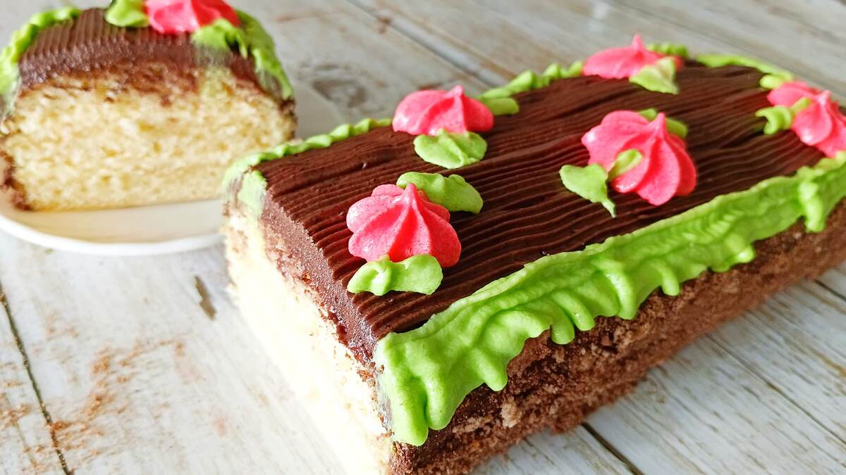 Бисквит: Крем: Сироп: Обсыпка: Для окрашивания: Пищевая ценность продукта на 100 грамм: Способ приготовления: В яйца всыпаю сахар и соль. Вымешиваю на высоких оборотах миксера. Всыпаю муку и недолго перемешиваю на низких оборотах миксера под углом 45 градусов, чтобы насыщать тесто кислородом. В продолговатую форму для выпечки с предварительно смазанную по бортам и обсыпанную мукой, вливаю всё бисквитное тесто. Убираю форму с тестом в заранее разогретую до 170С духовку на 25-30 мин. Для приготовления крема Шарлотт в сотейник с желтками всыпаю сахар, ванилин и вливаю молоко. Включаю плиту на среднюю мощность и непрерывно помешивая, довожу заварную основу до загустения. Как только пошёл пар, убавляю мощность плиты и интенсивно перемешиваю, чтобы заварная основа не свернулась. Заварная основа не должна быть слишком густой, иначе есть риск, что она свернётся. Поэтому как только получилась основа схожая с кефиром, снимайте сотейник с огня. Переливаю заварную основу в ёмкость для остывания.