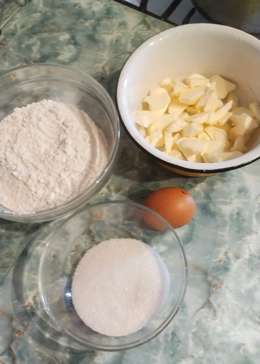 Порубил ножом вместе с мукой. Добавил яйцо.