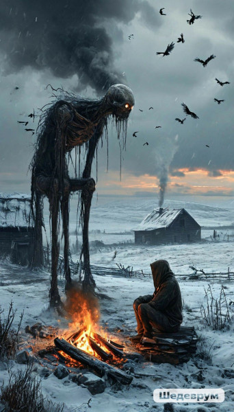 Вскоре две чёрные фигурки медленно шли по заснеженному полю, оставляя на нём прямую тонкую полосу – след от саней-волокуш, на которых мирно спал укутанный, точно капуста, двенадцатилетний Андрюшка, вырванный в последний момент из пасти страшного зверя. Тонкий изогнутый серп луны кривой улыбкой прорезал тëмное небо и посмотрел сверху на спешащих людей, на скованную немым ужасом деревню и на раскинувшееся среди вековых дубов панское поместье, окутанное колючей проволокой и утыканное по периметру чёрными вышками, словно старческий рот редкими гнилыми зубами. Светилу было невдомёк, да и вовсе, скорее всего, не волновало, что в этот самый момент на него точно так же, только снизу вверх смотрит комендант концлагеря гауптштурмфюрер СС Фридрих Дальмайер.