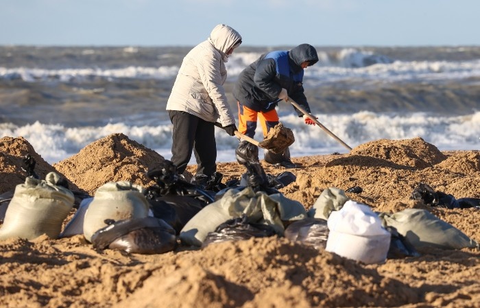 Москва. 21 декабря. INTERFAX.RU - Волонтеры провели очистку нескольких километров пляжей Черноморского побережья Краснодарского края от нефтепродуктов после разлива топлива из-за крушения танкеров, сообщила в субботу пресс-служба администрации Анапы. "В станице Благовещенской очищено три километра пляжей (...) В Благовещенской с самого утра работают порядка 600 человек. В уборке помогает спецтехника - свыше 20 КАМАЗов и тракторов", - говорится в сообщении. Горячая линия по вопросам ликвидации разлива мазута заработала в Анапе, сообщил телеграм-канал городской администрации. Номер телефона - 8 (86133) 3-25-74, говорится в сообщении. Отмечается, что горячая линия работает ежедневно с 8:00 до 20:00 по московскому времени. Ранее глава Краснодарского края Вениамин Кондратьев сообщал, что наиболее загрязненные участки берега - Благовещенская коса в Анапе (около 1 км) и поселок Витязево (около 3 км). Слой - от 10 до 15 сантиметров. На сбор нефтепродуктов с пляжей может уйти около месяца. Там