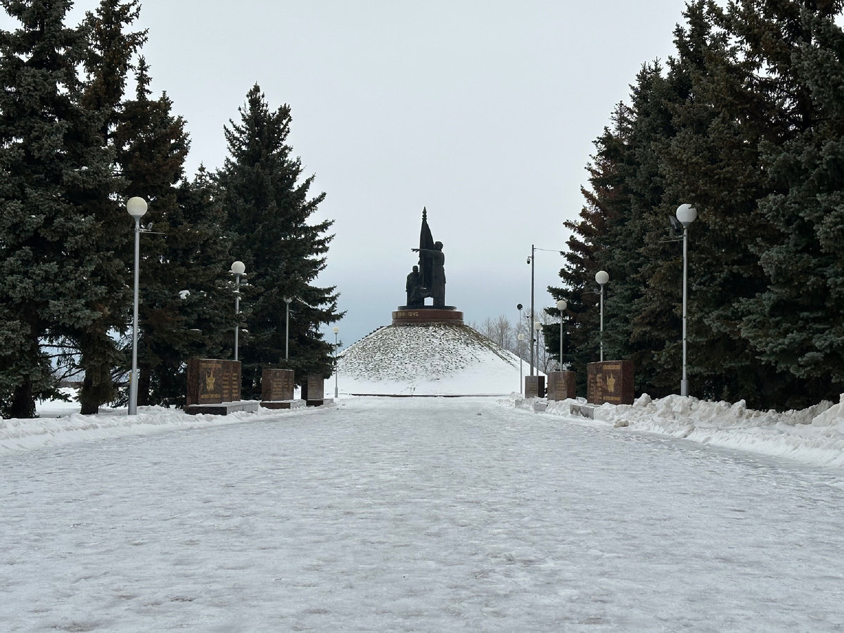 Смотровая площадка в парке Победы у Вечного огня — это самая высокая точка в городе. Отсюда открываются виды на Волгу, залив, старинные храмы по улице Константина Иванова.